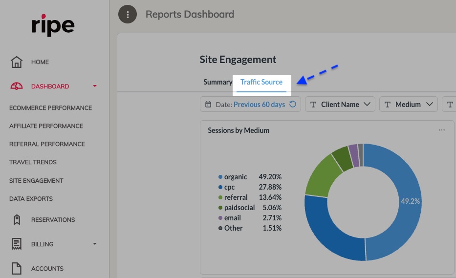 The Traffic Source report is now available in your Site Engagement dashboard.