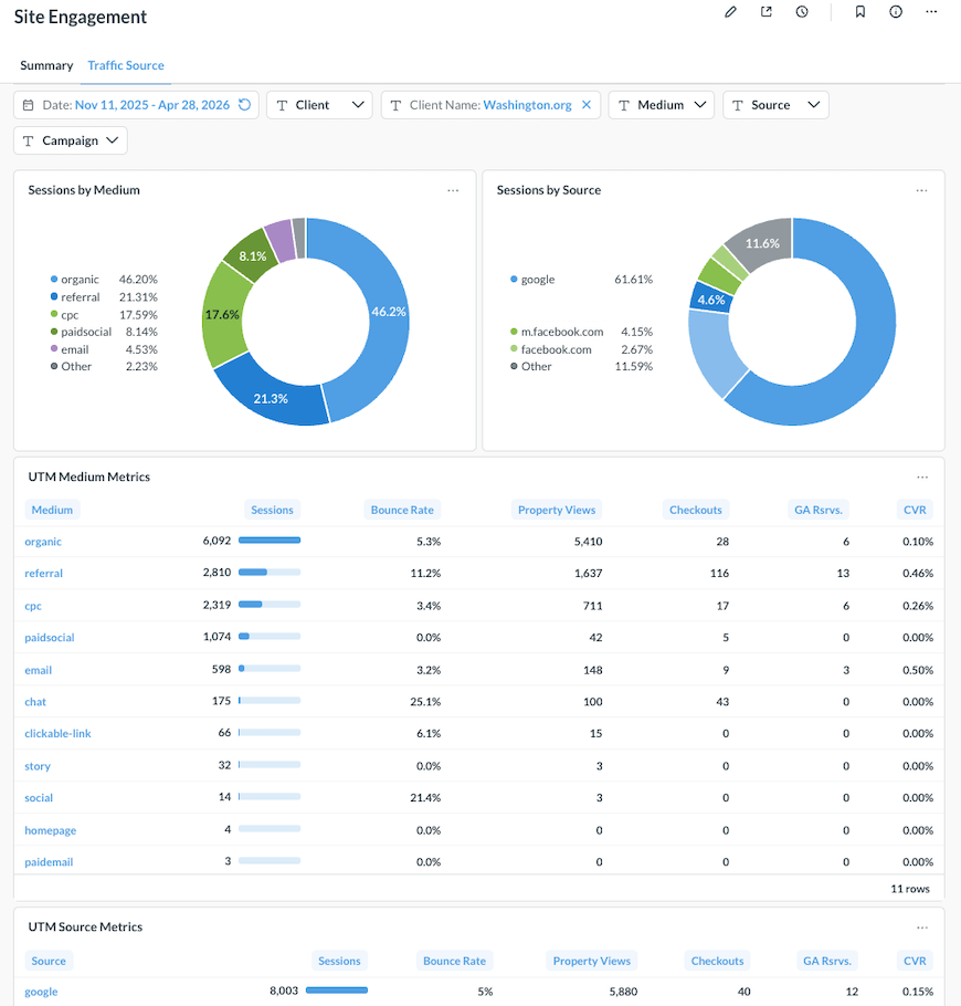 For best results, make sure any URLs you're distributing through email campaigns, paid ads, or partner placements are tagged with UTM parameters. The more consistently UTMs are applied, the more useful this report becomes.